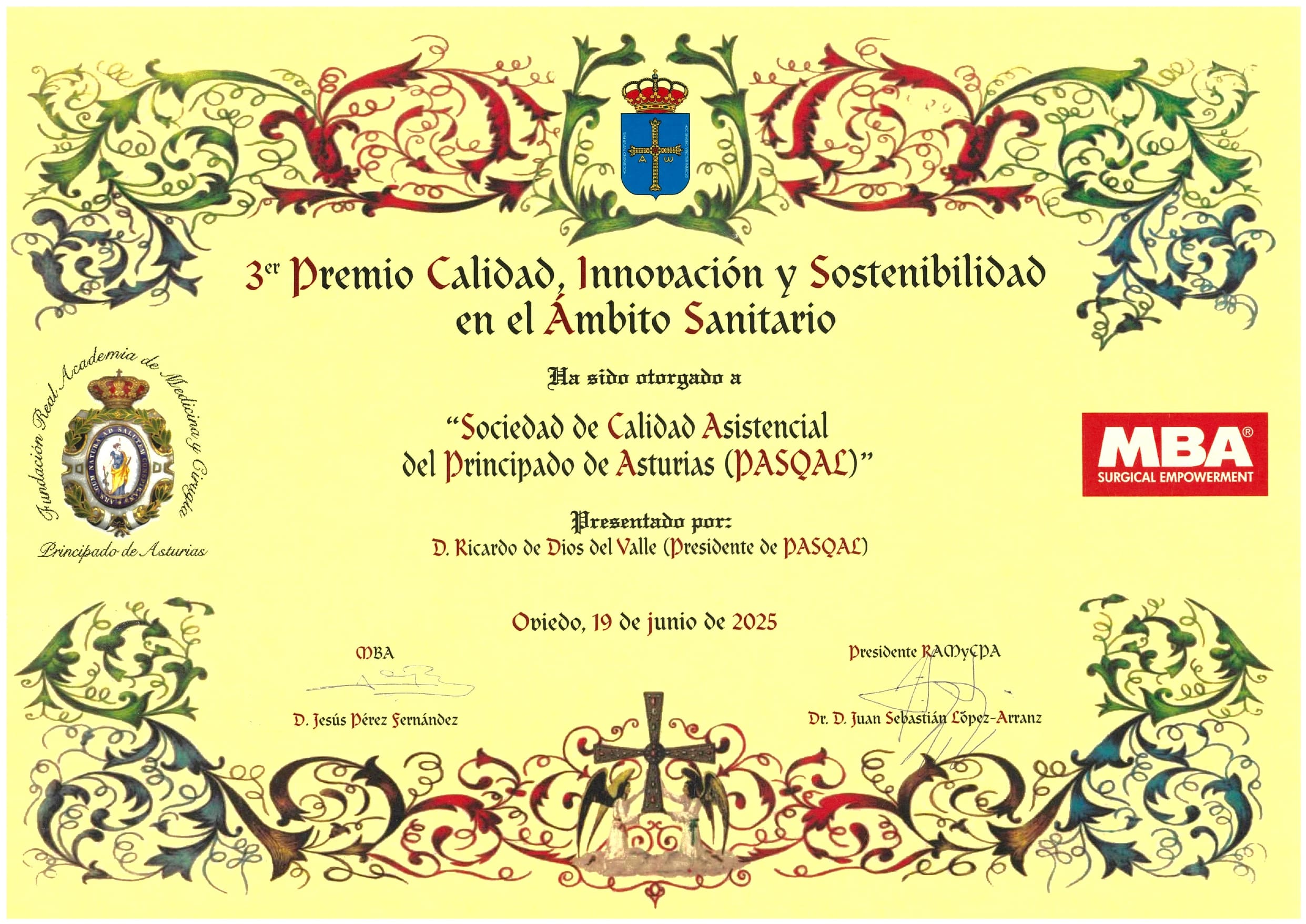 Con enorme alegría y gratitud queremos compartir con todos vosotros el diploma del III Premio a la Calidad, Innovación y Sostenibilidad en el Ámbito Sanitario 2025, concedido por la Real Academia de Medicina y Cirugía del Principado de Asturias a PASQAL el pasado mes de junio.